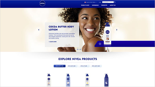 Сайт Nivea с галереей изображений для продвижения продуктов