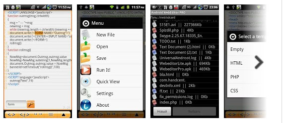 Приложение позволит вам создавать html, php, javascript и любые другие виды страниц, а так же редактировать уже существующие. Вы можете просматривать готовые страницы через мобильный браузер, предварительно загрузив их на наш сервер, или же воспользоваться быстрым просмотром страниц. В приложение встроен полноценный ФТП-клиент для работы с вашими фтп-файлами.
