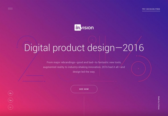 Что бы мы ни делали с цветами, чаще всего мы их используем повторно, чтобы сохранить единство стиля и последовательность в дизайне. Посмотрим на страницу InVision’s End of the Year. В верхней части лэндинга использовать розово-фиолетовый градиент в качестве фона. Ниже на сайте розовый и фиолетовый используются для оформления других элементов, в частности кнопок. Также на странице повторно используется белый цвет текста на розовом и фиолетовом фонах. В остальных случаях это серый цвет на белом фоне. Если бы использовались разные цвета, дизайн смотрелся бы намного хуже.