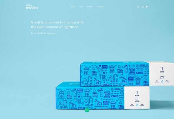 Рассмотрим другой пример — сайт Co-motion. На этом сайте используется несколько разных цветов. Но все они достаточно похожи по тону, чтобы создать последовательный поток. В этом примере ничто не выделяется особенно ярко, и это выглядит хорошо. При этом воздействия цветов таково, что создается связный логический поток, а пользователю хочется листать ниже.