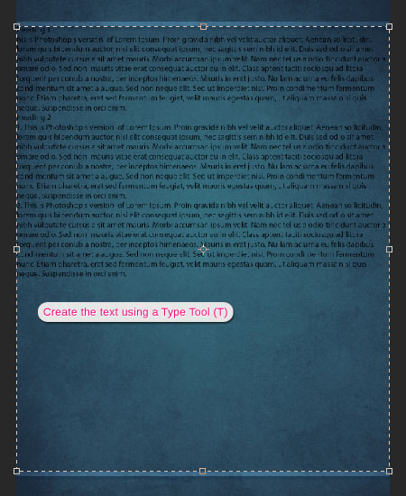 Для того, чтобы добавить текст, выберите Инструмент Текст (Type Tool (T)) или вставьте какой-нибудь текстовый шаблон, для этого перейдите в меню Текст (Type) -> Вставить Lorem Ipsum (Paste Lorem Ipsum) (это является новой функцией в Photoshop CS6).