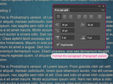 И некоторые другие значения в панели параграфов (Paragraph Panel)