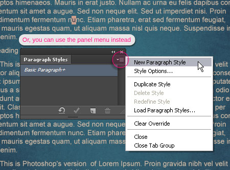 ИЛИ щелкните стрелку на панели меню в верхнем правом углу и выберите Новый стиль абзаца (New Paragraph Style). Просто имейте в виду, что в панели меню есть все необходимые опции.