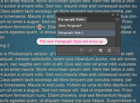 При активном стиле параграфа нажмите кнопку Создать новый стиль абзаца (Create new Paragraph Style) внизу панели Стили абзаца (Paragraph Style). Теперь новый стиль будет отображаться в панели.