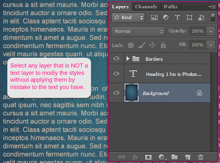 2 — лучше всего активировать текстовые слои, выбрав любой другой (не текстовый) слой , затем дважды щелкните стиль, который вы хотите изменить в панели стилей абзацев.