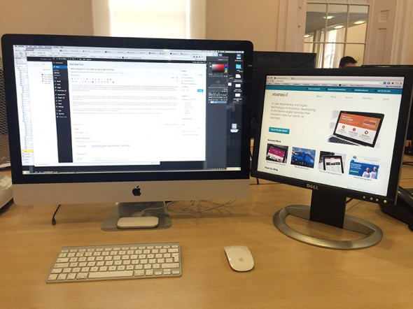 Несколько лет назад автор этой статьи Энди Лоббан приобрел старый монитор 16″, который использует в качестве второго монитора, дополнительно к 27″ iMac. Он уверял окружающих, что на втором мониторе находятся почта и браузер, в то время как на главном кипит работа. На самом деле Энди хотел посмотреть прямую трансляцию Кубка Райдера во время работы в одну из пятниц. Этот монитор — действительно удобное место для браузеров, твиттера, почты и прочих вещей, но оказалось что у Энди эта идея не сработала и такое использование не прижилось.