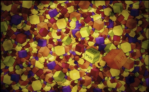 Colorful Cube Design. Здесь фильтр Render > Clouds применяется для затемнения некоторых обрастей изображения.