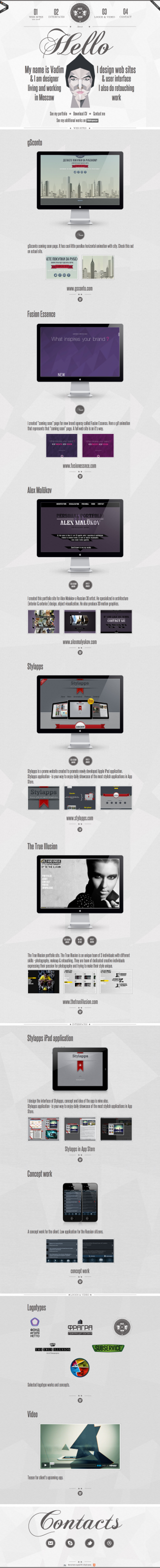 Проработав несколько лет в индустрии кино и телевидения, создавая графику для фильмов и рекламы, я наконец решился заняться тем, что меня всегда привлекало в большей степени - это разработка интерфейсов и вэб-дизайн. Решился и сделал 3 сайта на заказ - stylapps, thetrueillusion, .alexmalyukov и 1 программу для iPad Stylapps. Затем выпустил свой сай- портфолио и на удивление он стал «сайтом дня» на уважаемом мною ресурсе (www.awwwards.com), и одним из 365 лучших css сайтов в мире за 2011 год. И понеслось...