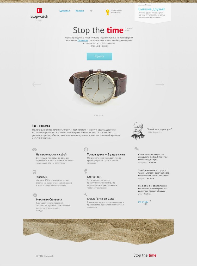 Еще в феврале 2012 года Дежурка писала о необычном конкурсе, который проводило digital-агентство «Бюро Пирогова» совместно с корпорацией Adobe Systems. Конкурс заключался в том, что веб-дизайнерам необходимо создать сайт для непродаваемого продукта, будь то туфли со сломаным каблуком, червивое яблоко, автомобиль без руля или же надкушенная шоколадка. Конкурс требовал чрезвычайной смекалки, творческого подхода, выдумки и бурной фантазии, ведь по сути надо продать то, что продать в принципе невозможно. В течении месяцев веб-дизайнеры с разных стран присылали свои работы на конкурс, и вот, наконец-то, победители объявлены, а призы розданы.