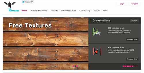 На сайте имеется достаточно большое количество бесплатных текстур, изображений и 3D-моделей.