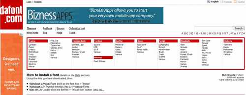 Dafont предлагает действительно большое количество шрифтов, большинство из них являются бесплатными для коммерческого и личных целей. Здесь вы также сможете сразу просмотреть, как будет выглядеть текст. Для поиска существует много различных категорий. Также сможете найти и кириллические шрифты. У