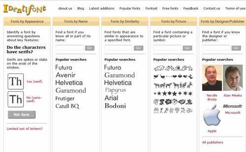 Сервис позволяет определить, какой шрифт использовался, если загрузить на него изображение. Также на нем есть много свободных шрифтов для загрузки.
