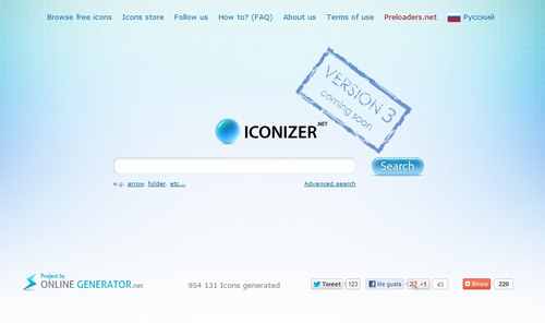 Здесь вы сможете найди достаточно много интересных иконок. После выбора вы также сможете изменить его фон, угол наклона, цвет. Поиск происходить по ключевым словам.