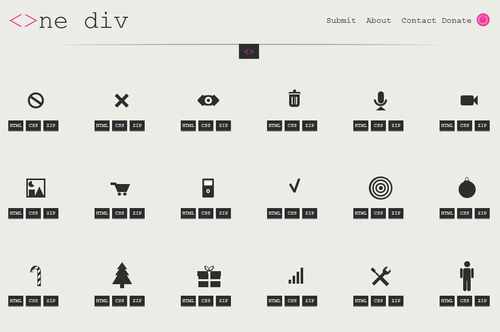 Все иконки, которые отображаются на этом сайте, созданы на чистом CSS и только в одном блоке DIV HTML.