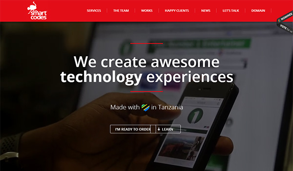 На этом сайте фоном служит видео на весь экран. В этом случае для выделения текста был использован еще один прием наложения — вертикальные линии. Сочетание красного и черного цветов смотрите необычно и интересно.