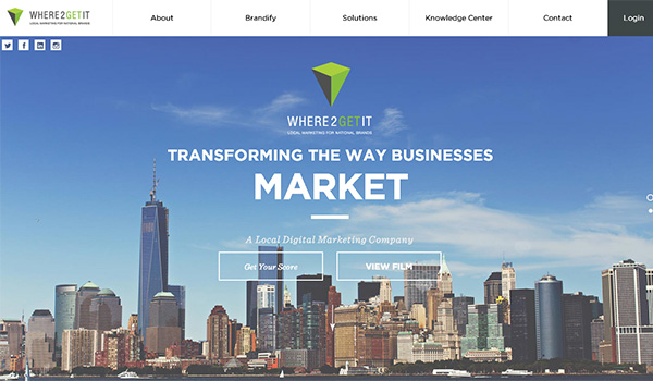 На этом сайте в качестве фона используется статичное изображение. Оно немного размыто, что позволяет тексту аккуратно выделяться. Еще один приятный момент: когда вы заходите на сайт, надпись «Transforming the way businesses» остается неподвижной, а слово под ней меняется на «get discovered», «get found», «engage» и «market».