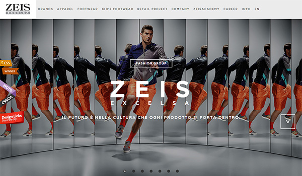 Этот сайт, посвященный одежде, необычен своим горизонтальным слайд-шоу. Здесь также используется полупрозрачный слой черного цвета, который позволяет белому тексту оставаться четким.