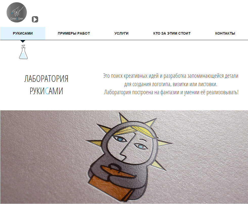 Рукисами — отличный пример портфолио. На главной странице есть все необходимое чтобы привлечь потенциального клиента, удержать его и увести на следующие разделы.