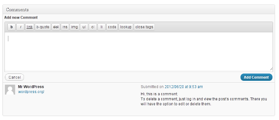 До сих пор можно было только реагировать на существующие комментарии к данному сообщению на странице редактирования записи. С WP 3,4 вы также можете создавать новые комментарии во время редактирования поста.