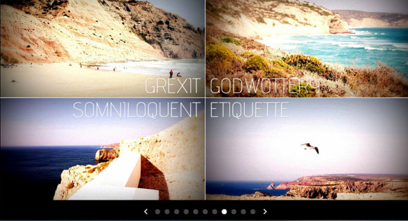 <ul id="sg-panel-container"> <li data-w="60" data-h="55"> <img title="Grexit" src="images/1.jpg" data-rotate-x="50" /> <img title="Godwottery" src="images/2.jpg" data-rotate-y="-50" /> <img title="Somniloquent" src="images/3.jpg" data-rotate-x="50" data-translate-z="-700" /> <img title="Etiquette" src="images/4.jpg" data-translate-z="250" /> </li> <li data-w="50" data-h="100"> <img title="Somniloquent" src="images/3.jpg" data-rotate-x="50" data-translate-z="-700" /> <div> <div class="sg-content"> <h3>Proinde vos postulo</h3> <p>Veggies sunt bona vobis, proinde...</p> </div> </div> </li> <!-- ... --> </ul>