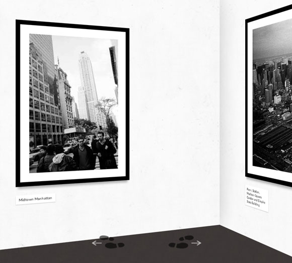 Во второй части статьи будет еще один экспериментальный, но достаточно интересный урок — создание 3d комнаты-галереи. Идея будет заключаться в том, чтобы создать реалистичную галерею изображений, используя 3d-преобразования CSS . Изображения будет «повешены» вдоль стены, которая будет иметь края. Когда мы подойдем к месту, где стена заканчивается, она повернется, и мы окажемся на другой части стены. Чтобы вызвать ощущение пребывания в реальной комнате, у нас будет четыре стены и угла. Возле каждого изображения будет висеть описание, при нажатие на которое будет появляться увеличенное описание снизу.