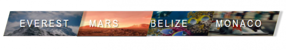 #everest { z-index: 5; background-image: url(everest.jpg); } #mars { z-index: 4; background-image: url(mars.jpg); left: -20px; } #belize { z-index: 3; background-image: url(belize.jpg); left: -40px; } #monaco { z-index: 2; background-image: url(monaco.jpg); }