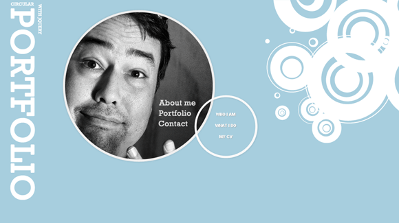 <div> <div id="images"> <img id="image_about" src="images/1.png" alt="1" style="display:block;"/> <img id="image_portfolio" src="images/2.png" alt="2"/> <img id="image_contact" src="images/3.png" alt="3"/> </div> <div> <div id="menu"> id="about" href="">About me</a> id="portfolio" href="">Portfolio</a> <a id="contact" href="">Contact</a> </div> </div> </div> <div id="circle_about"> <div> <ul> <li><a href="#">Who I am</a></li> <li><a href="#">What I do</a></li> <li><a href="#">My CV</a></li> </ul> </div> </div> <div id="circle_portfolio"> <div> <div> <a href="#"><img src="thumbs/1.jpg" alt=""/></a> <a href="#"><img src="thumbs/2.jpg" alt=""/></a> ... </div> </div> </div> <div id="circle_contact"> <div> <ul> <li><a href="#">Email</a></li> <li><a href="#">Twitter</a></li> <li><a href="#">Facebook</a></li> </ul> </div> </div>