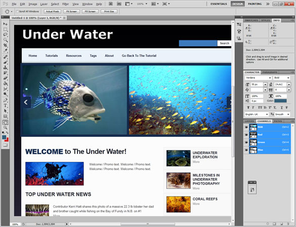 Теперь шаблон страницы на подводную тему готов. Надеемся, Вам понравился этот урок и он Вам пригодится.