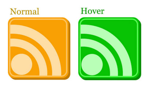 Не хватает только добавить эффект при наведении указателя мыши к этому логотипу ленты новостей RSS. Просто добавим стили CSS ниже, чтобы реализовать это.
