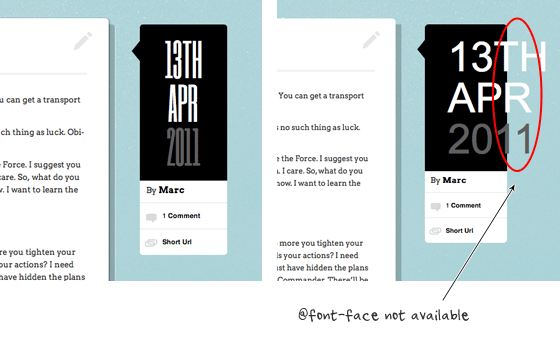 Хотя свойство @font-face поддерживается большинством браузеров, например, браузерами Internet Explorer, Firefox, Chrome и Safari, есть и исключения. И когда это свойство не поддерживается, то нестандартные шрифты могут испортить верстку или привести к другим нежелательным последствиям. В этом уроке мы расскажем о распространенных сложностях, возникающих при использовании нестандартных шрифтов и подборе запасных шрифтов, присутствующих во всех системах, и покажем, как создать отличные запасные шрифты с помощью библиотеки JavaScript под названием Modernizr.