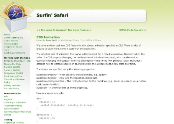 CSS переходы были введены еще в октябре 2007 года и объявлены на блоге Surfin 'Safari WebKit.