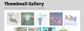 CSS становится более интересным, как мы переходим к галерее. Вы видите ID #thumbs, к которому в дальнейшем будут применены следующие стили. Давайте взглянем, как это выглядит: