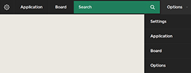 <ul> <li id="settings"> <a href="#"><img src="settings.png" /></a> </li> <li> <a href="#">Application</a> </li> <li> <a href="#">Board</a> </li> <li id="search"> <form action="" method="get"> <input type="text" name="search_text" id="search_text" placeholder="Search"/> <input type="button" name="search_button" id="search_button"></a> </form> </li> <li id="options"> <a href="#">Options</a> <ul> <li><a href="#">Settings</a></li> <li><a href="#">Application</a></li> <li><a href="#">Board</a></li> <li><a href="#">Options</a></li> </ul> </li> </ul> <script src="prefixfree-1.0.7.js" type="text/javascript"></script>