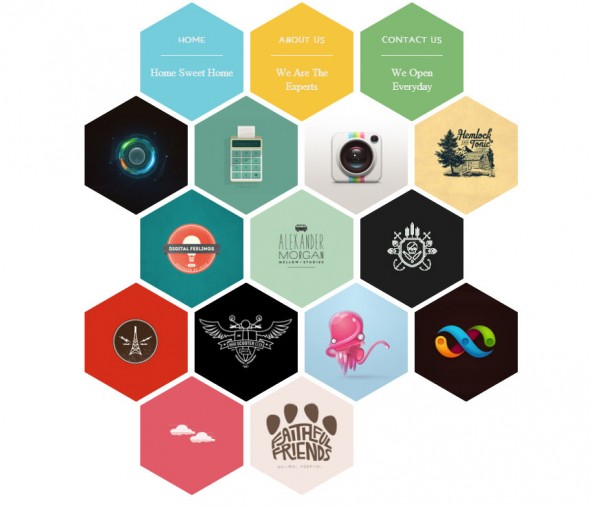 <div class="hex hex-3"> <div class="inner"> <h4>CONTACT US</h4> <hr /> <p>We Open Everyday</p> </div> <a href="#"></a> <div class="corner-1"></div> <div class="corner-2"></div> </div> <div class="hex" style="background-image: url(images/2.jpg);"> <a href="#"></a> <div class="corner-1"></div> <div class="corner-2"></div> </div>
