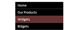 ul#nav { list-style-type: none; width: 12em; background: black; padding-left: 0; } ul#nav li a { color: #fff; text-decoration: none; font-size: larger; line-height: 200%; display: block; border-bottom: 1px solid #777; padding-left: 1em; } ul#nav li a:hover { background: #633; }