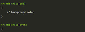 Можно задать псевдоклассу :nth-child значение odd (нечетный), чтобы выбрать все элементы с нечетными порядковыми номерами. Т.е., первый, третий, пятый, седьмой, девятый и т. д элементы. Это очень удобно, чтобы задавать цвета соседним рядам таблицы.