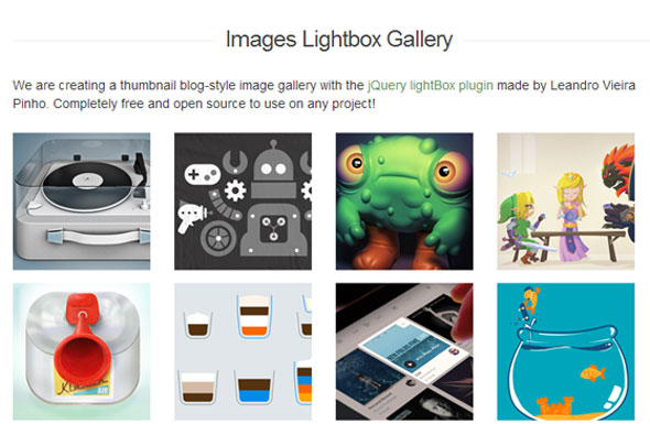 Для этого примера нужно скачать наиболее свежую версии jQuery. Это единственное требование для нормальной работы плагина ligthbox. Другой важный нюанс — это разметка html страницы. Нам нужно отформатировать галерею образов, используя иконки, который ссылаются на изображения высокого разрешения.