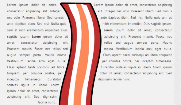 В отличии верхнего плагина, который используется для заголовков, Bacon используется в основном для работы с основным текстом. Плагин имеет смешное название и очень хорошие возможности. Он позволяет тексту обтекать кривую Безье.
