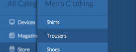 <!-- mp-menu --> <nav id="mp-menu" class="mp-menu"> <div class="mp-level"> <h2 class="icon icon-world">All Categories</h2> <ul> <li class="icon icon-arrow-left"> <a class="icon icon-display" href="#">Devices</a> <div class="mp-level"> <h2 class="icon icon-display">Devices</h2> <ul> <li class="icon icon-arrow-left"> <a class="icon icon-phone" href="#">Mobile Phones</a> <div class="mp-level"> <h2>Mobile Phones</h2> <ul> <li><a href="#">Super Smart Phone</a></li> <li><a href="#">Thin Magic Mobile</a></li> <li><a href="#">Performance Crusher</a></li> <li><a href="#">Futuristic Experience</a></li> </ul> </div> </li> <li class="icon icon-arrow-left"> <!-- ... --> </li> <li class="icon icon-arrow-left"> <!-- ... --> </li> </ul> </div> </li> <li><!-- ... --></li> <!-- ... --> </ul> </div> </nav> <!-- /mp-menu -->