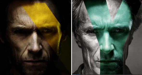 Режимы наложения, геометрия обрезки и фильтры делают многие эффекты, ранее доступные только в программе PhotoShop, создаваемыми и с помощью только CSS. Один из эффектов, который можно создать с помощью этих свойств CSS, – накладывание изображений для сравнений «до и после» или для получения других визуальных эффектов. Рассмотрим пример, в котором разместим фотографию лица Хью Джекмана над фотографией лица Клинта Иствуда, сделанные примерно в одно время, это особенно эффектно, так как их костная структура и черты лица имеют много общего.