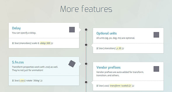 tram.js это кроссбраузерные CSS3 переходы в JavaScript. Главная идея плагина в том, чтобы взять производительность и гибкость CSS-переходов и при помощи JavaScript сделать их интереснее, выразительнее, и добавить им прочих полезных свойств.