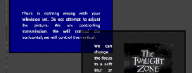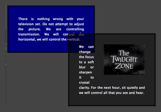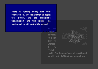 <div id="lower"> <p>There is nothing wrong with your television set. Do not attempt to adjust the picture. We are controlling the transmission. We will control the horizontal, we will control the vertical. </div> <div id="upper"> <p><img src=the-twilight-zone.png alt="The Twilight Zone">We can change the focus to a soft blur or sharpen it to crystal clarity. For the next hour, sit quietly and we will control all that you see and hear. </div>