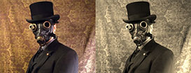 <img src="steampunk-man.jpg" class="sepia" alt="Gentleman wearing a steampunk gasmask and top hat" >
