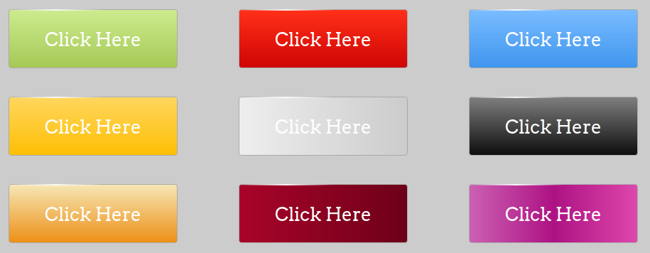 <a href="#" class="button green"><div class="light"></div>Click Here</a> <a href="#" class="button red"><div class="light"></div>Click Here</a> <a href="#" class="button blue"><div class="light"></div>Click Here</a> <a href="#" class="button yellow"><div class="light"></div>Click Here</a> <a href="#" class="button grey"><div class="light"></div>Click Here</a> <a href="#" class="button black"><div class="light"></div>Click Here</a> <a href="#" class="button brown"><div class="light"></div>Click Here</a> <a href="#" class="button darkred"><div class="light"></div>Click Here</a> <a href="#" class="button purple"><div class="light"></div>Click Here</a>