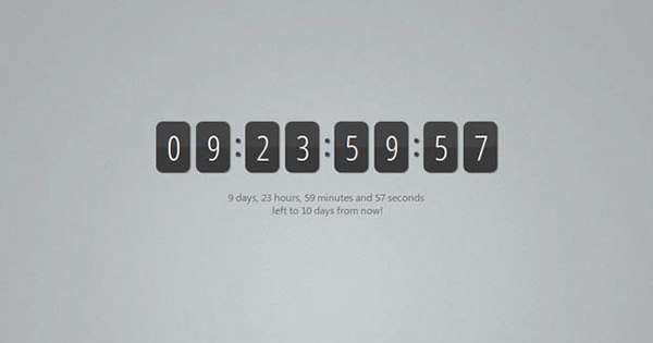 jQuery Countdown - jQuery плагин, который показывает оставшиеся дни, часы, минуты и секунды, до свершения события, обновляется с анимацией каждую секунду.