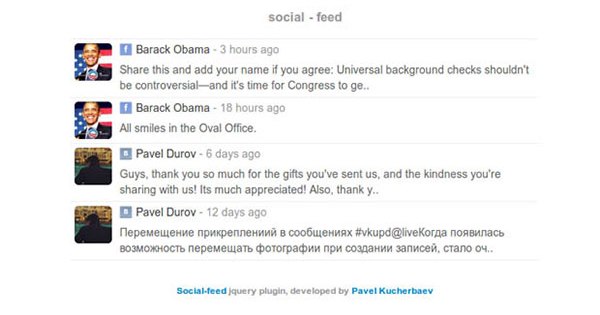 Social Feed -является jQuery плагином, который отображает последние обновления в социальных сетях.