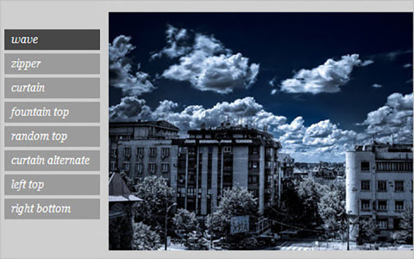 jqFancyTransitions: jQuery Image Rotator Plugin - простой в использовании плагин jQuery для отображения фотографий в виде слайд-шоу с эффектами перехода. Загрузить плагин.