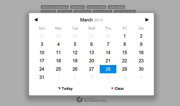 Pickadate.js - это jQuery плагин, который создает виджет для выбора даты. Он очень прост в использовании и может быть настроен с CSS.  Чтобы использовать его, необходимо включить файл JS и файл стилей.