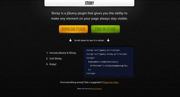 Sticky - плагин, который дает возможность любой элемент на странице сделать видимым всегда при прокрутке страницы.