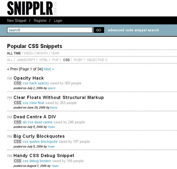 19. Snipplr — сайт, на котором собраны самые популярные css-сниппеты.